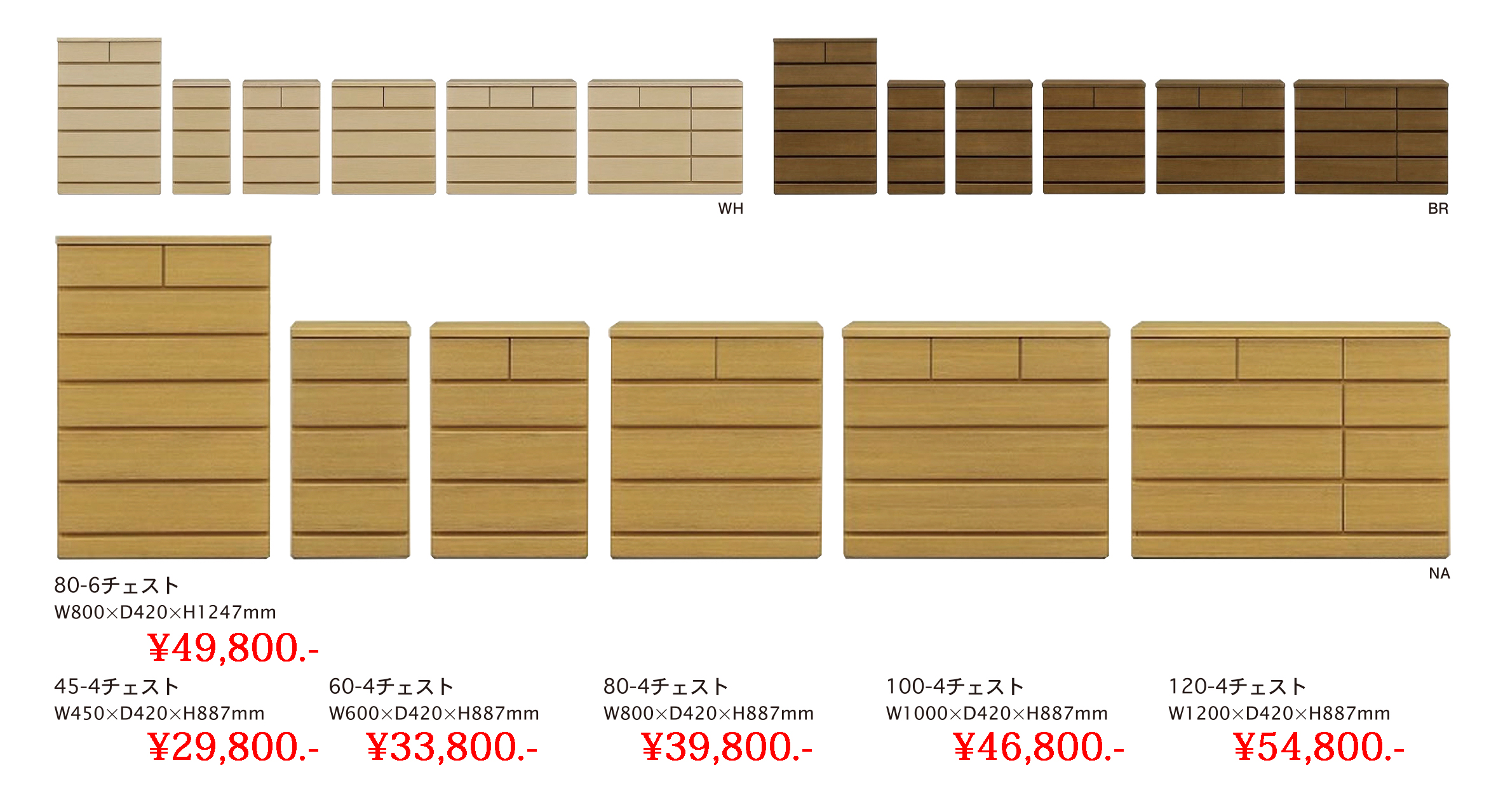 フルスライドチェスト 39,800.-(税込) 幅80×奥42×高89cm 全3色、全6サイズ有り |
