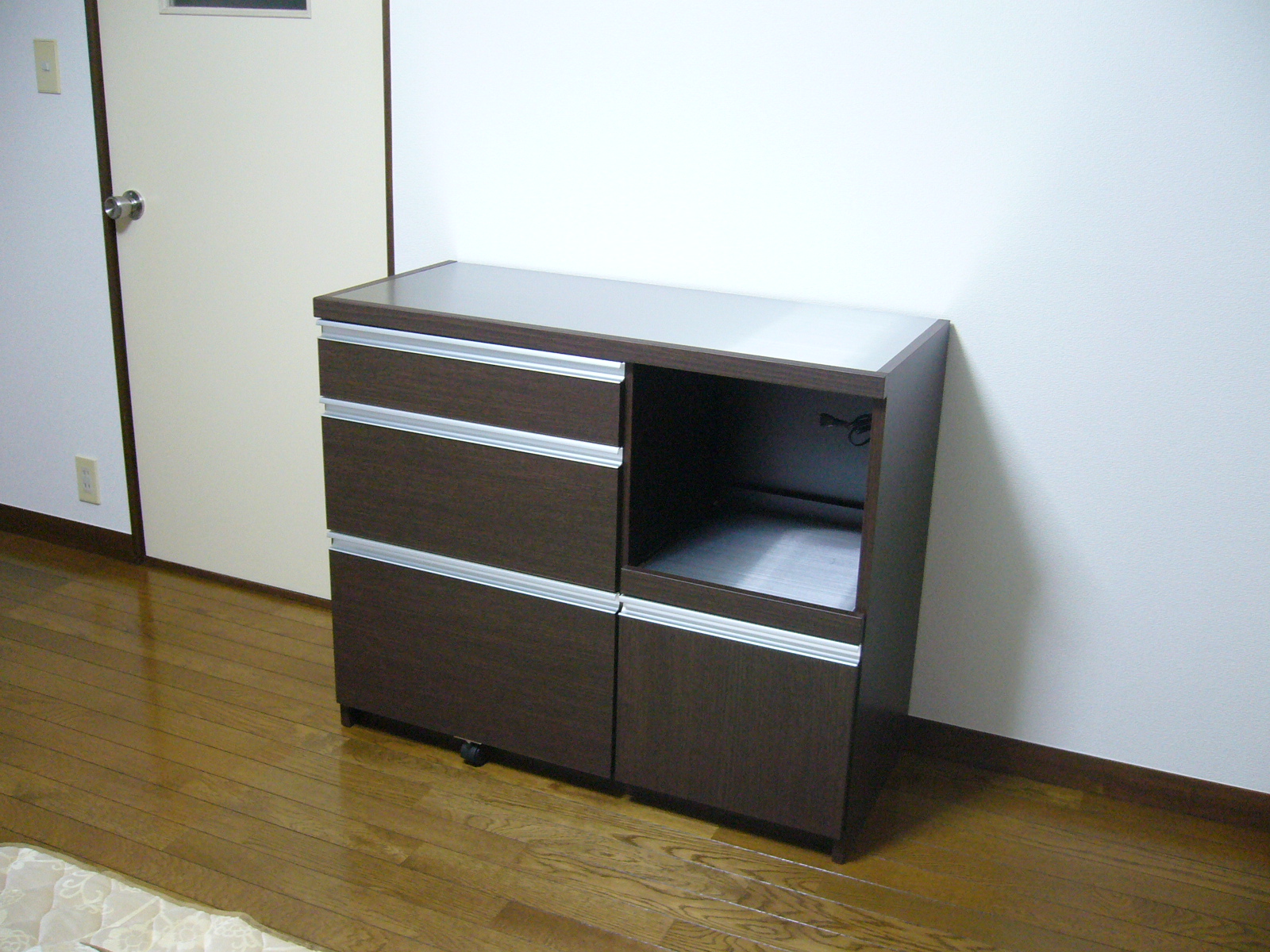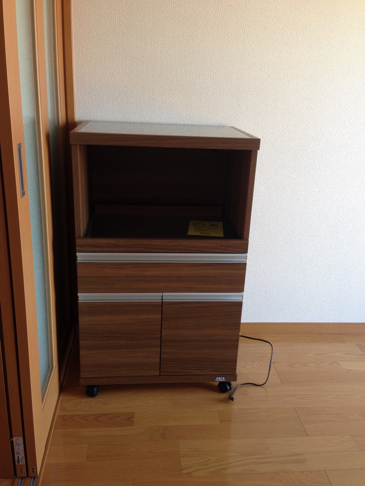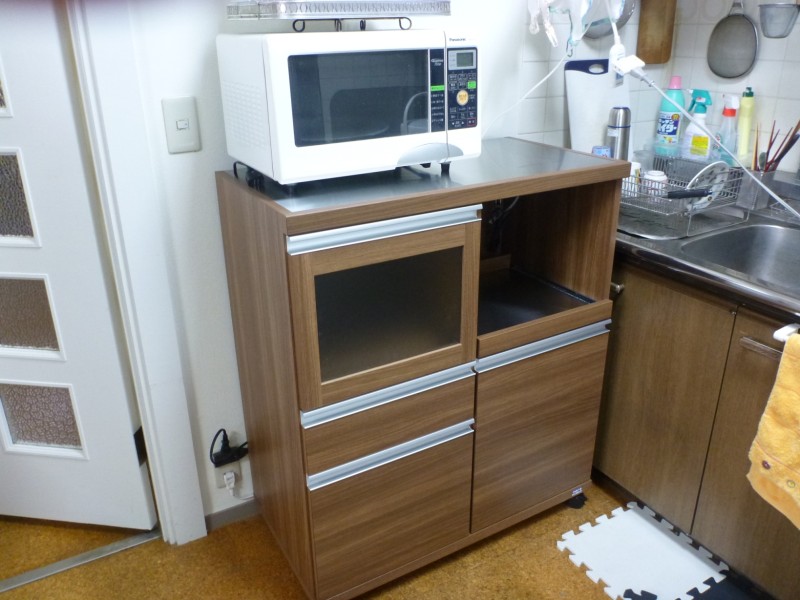 ウォールナットレンジボード 小さめレンジ台 ウォールナットカラーレンジボード 小さめレンジ台 完売いたしました お客様宅納品事例写真集(実際のお客様のお部屋にお届けした写真です) ウォールナットカラーレンジボード ● 材質:強化シートなど ●色:・ブラウン・ホワイト ● 商品サイズ:幅60.2×奥44.5×高98.3cm ● 商品価格:完売いたしました
