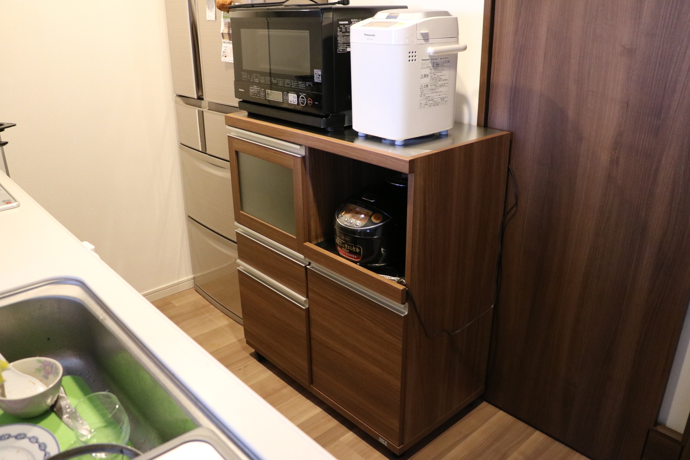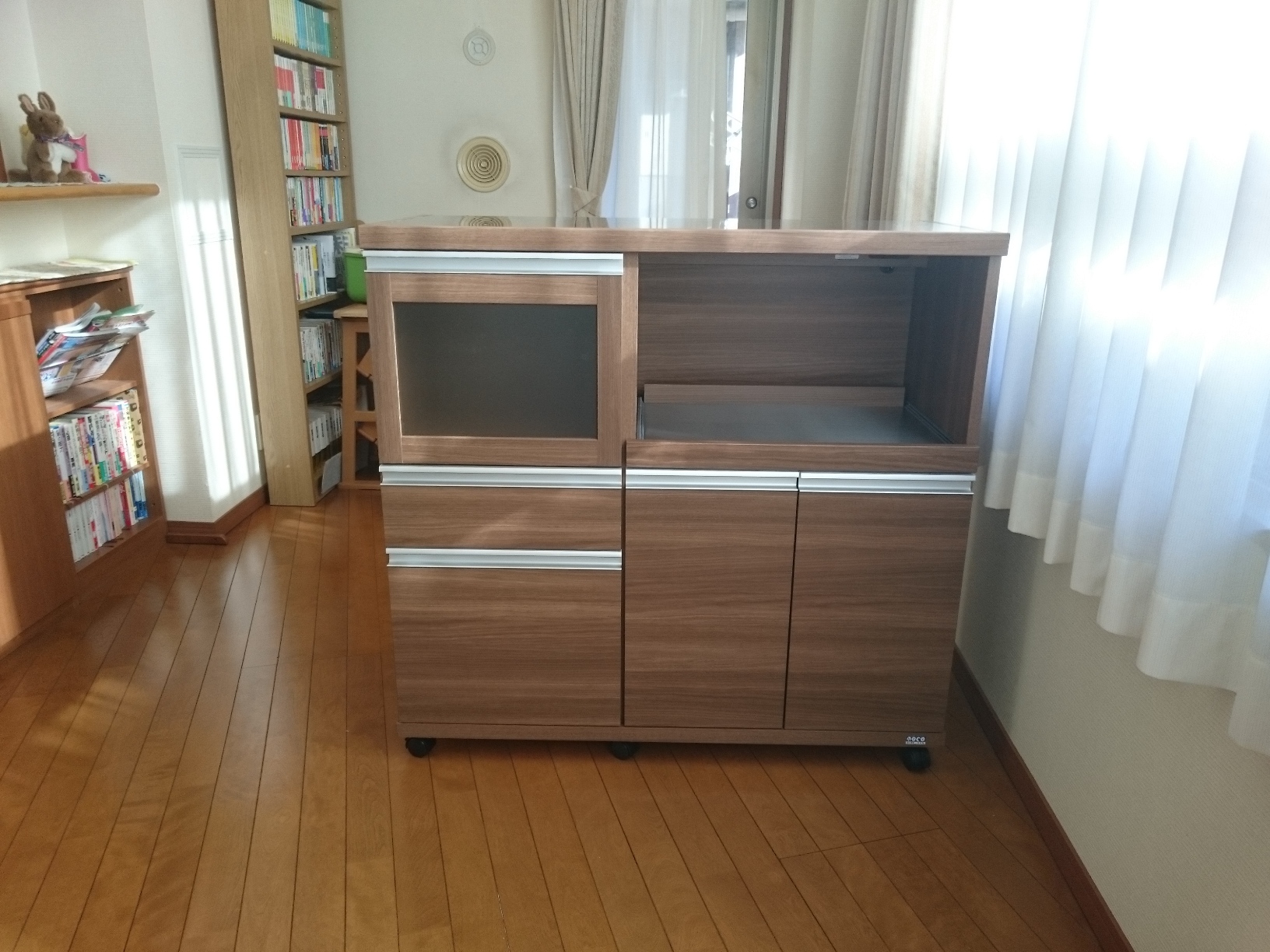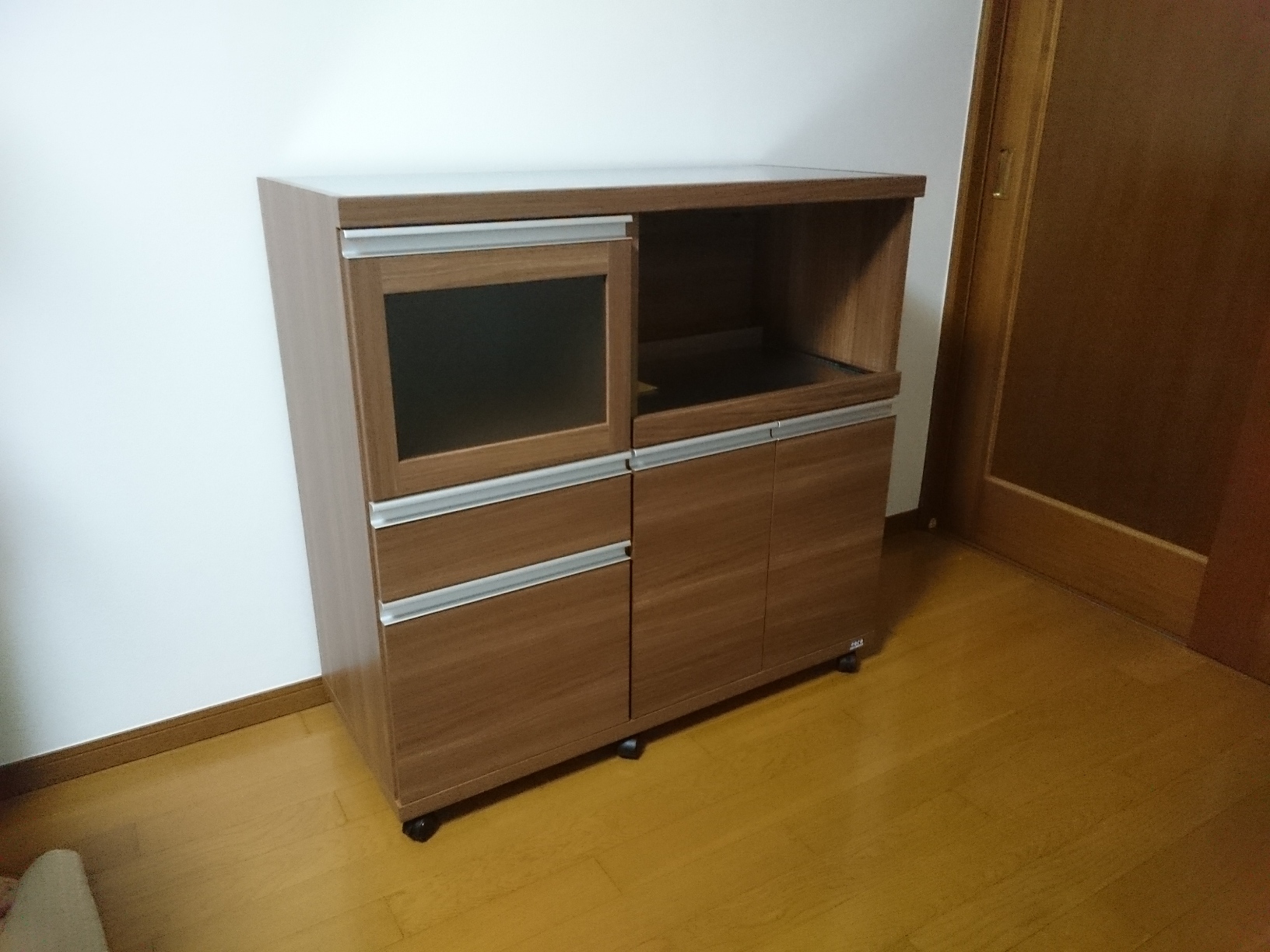 ウォールナットレンジボード 小さめレンジ台 ウォールナットカラーレンジボード 小さめレンジ台 完売いたしました お客様宅納品事例写真集(実際のお客様のお部屋にお届けした写真です) ウォールナットカラーレンジボード ● 材質:強化シートなど ●色:・ブラウン・ホワイト ● 商品サイズ:幅60.2×奥44.5×高98.3cm ● 商品価格:完売いたしました