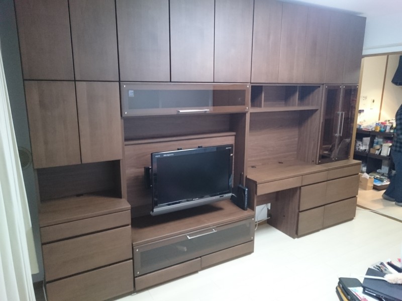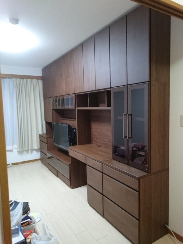 | 天然木『ウォールナット材』を使った壁面収納 |