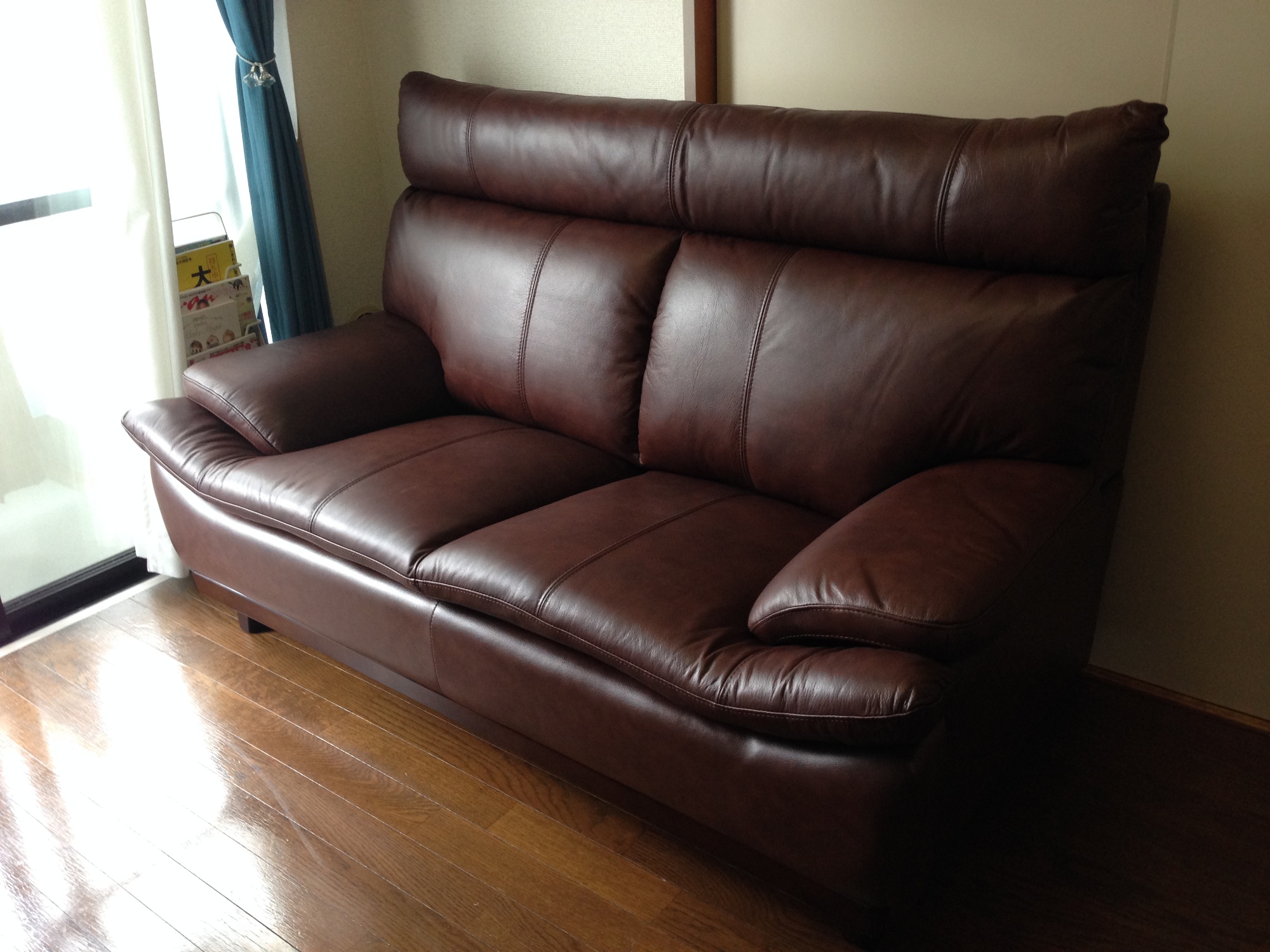本皮スリムハイバックソファ 革の良さと背中のちょうど良さが人気の椅子