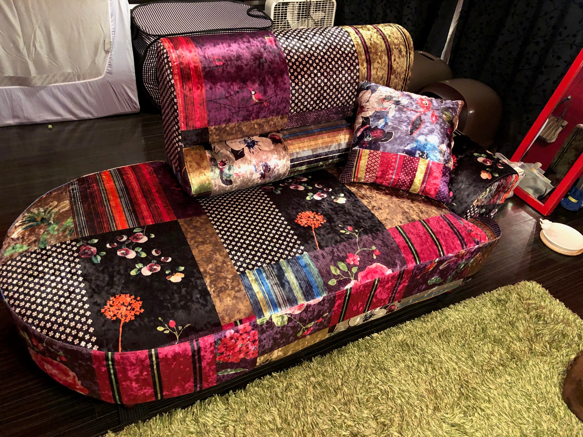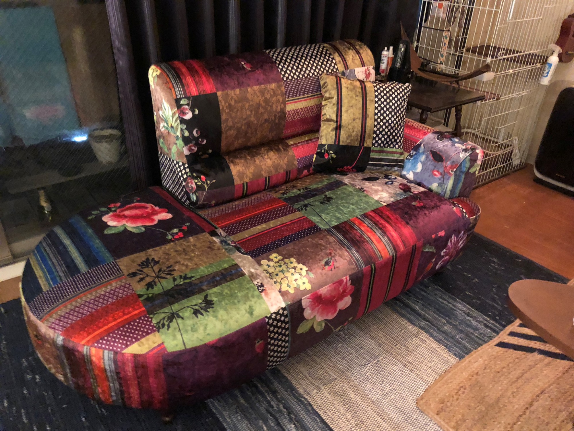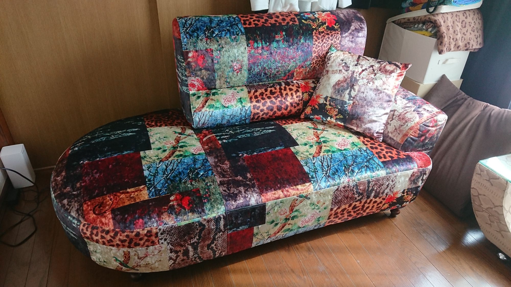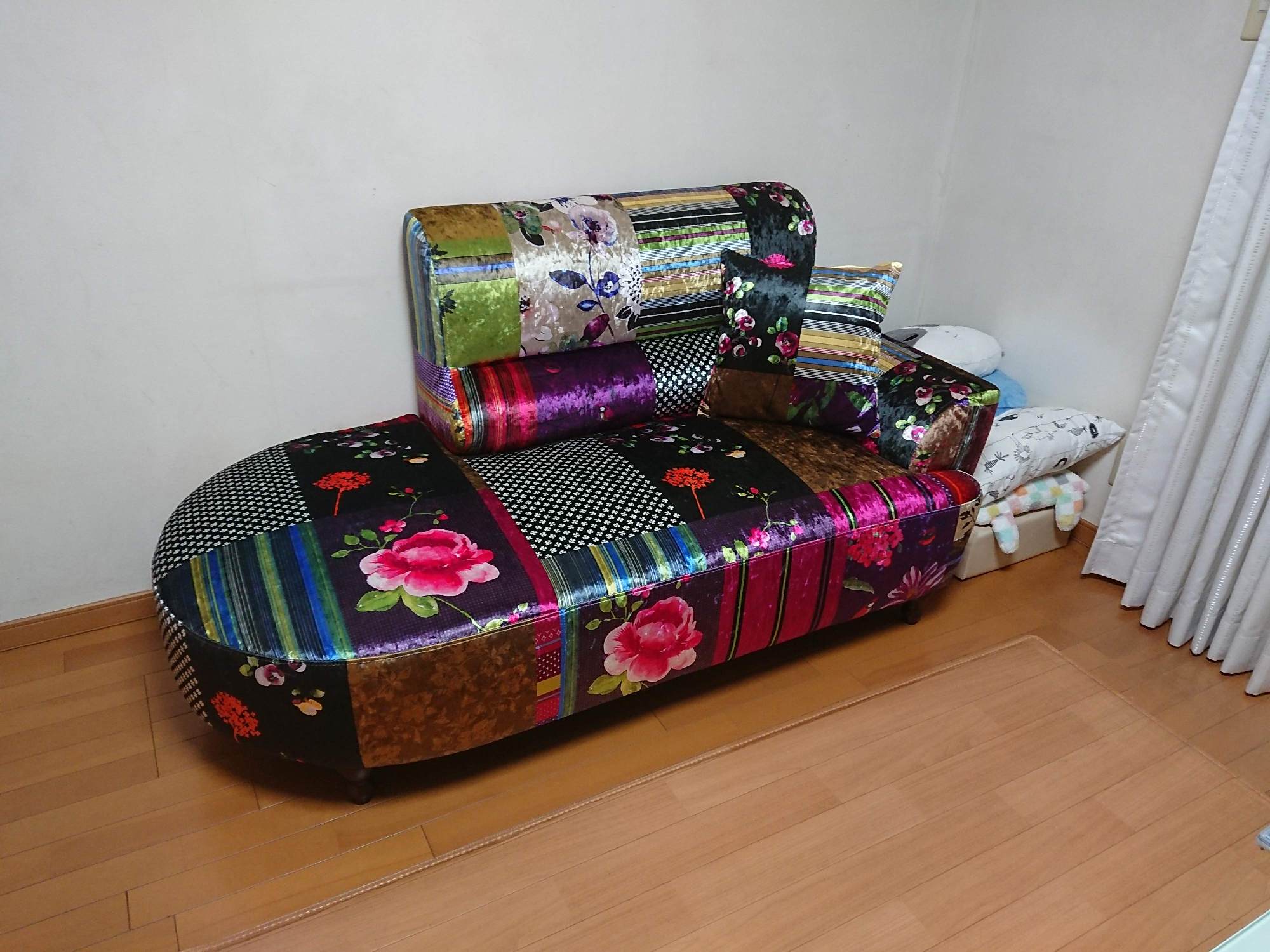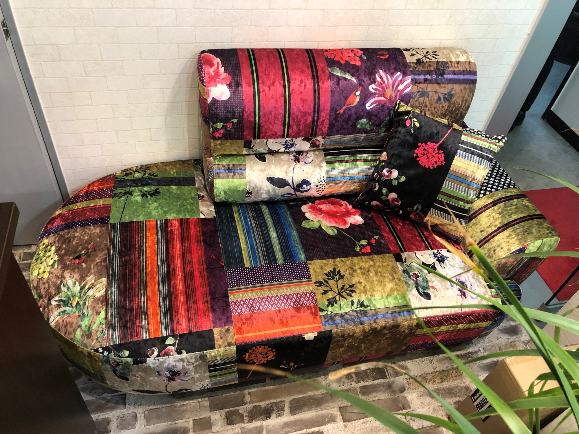 アートパッチ カウチソファ ベロア調のデザインおしゃれな高級風 ソファ アートパッチ カウチソファ お客様宅納品事例写真集 アートパッチ カウチソファ ベロア調のファブリック張り地が特徴的な片カウチソファ 個性的なファブリック張り地をパッチワークしたソファ 見た目も触り心地もGOODです カウチスタイルでゆったりと座れます ● 材質:ファブリック・ウェービングベルト・Sバネ等 ● 色:A柄・B柄 (C柄とD柄は完売となりました) ● 商品サイズ:幅164×奥84×高84×座面高40cm ● 商品価格:64,800.-
